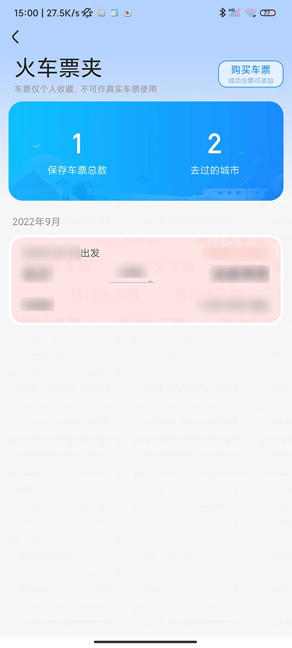 智行火车票app可以将购买的车票添加到车票夹,用作个人收藏,能清晰看到保存的车票总数和去过的城市。那智行火车票车票夹在哪里呢?一起来看看吧~