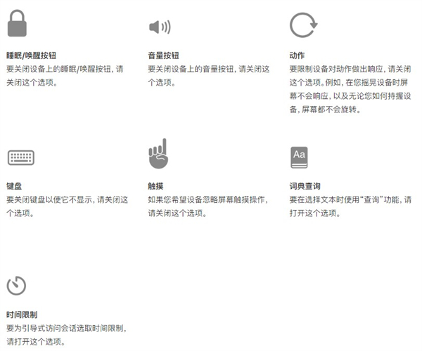 引导式访问有什么用?引导式访问有保护隐私和保持专注的作用,引导式访问可将您的设备限制为只能使用某一个 App,并让您控制哪些功能可用。当孩子使用您的设备,或不小心做出的手势可能会分散您的注意力时,您可打开“引导式访问”。