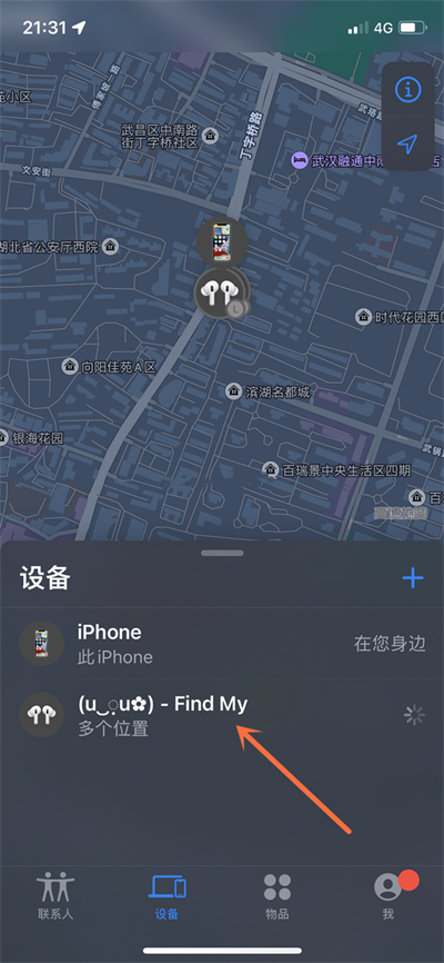 2、点击【查找耳机】。开启后打开查找设备APP,点击耳机名称即可查看定位。