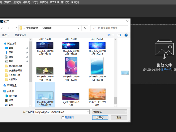 1、按【ctrl+o】,并选择需要打开的图片(或直接将需要打开的图片拖入打开的ps界面)。