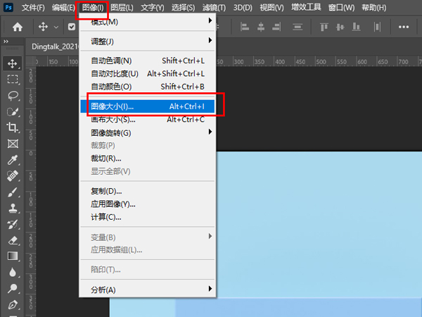 2、点击【图像】,点击【图像大小】(或直接按快捷键alt+ctrl+i)。