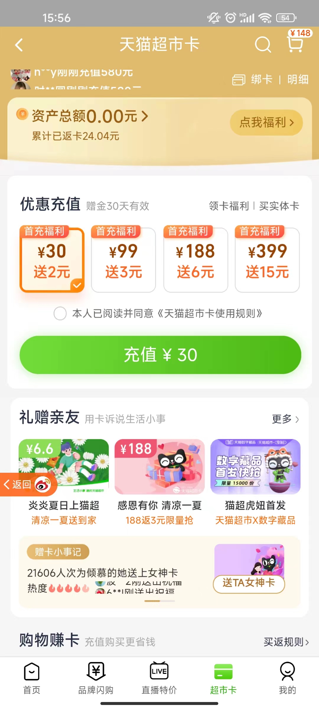 当在购买天猫超市商品时,部分商品会返猫超卡,那返猫超卡是马上返吗,让我们一起来看看吧~