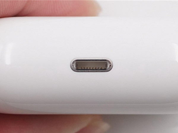 2、找到AirPods Pro充电盒底部的充电接口,将数据线连接电源和接口即可。