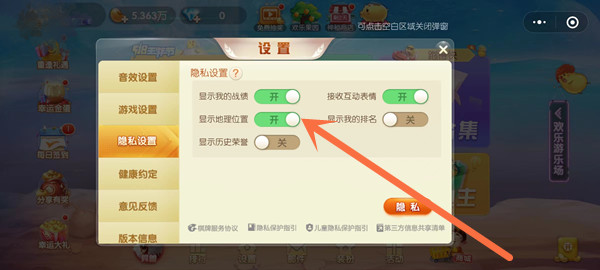 2、在隐私设置中将显示地理位置的开关开启即可。