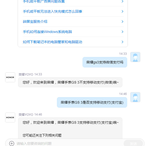 荣耀gs3支持微信支付吗?荣耀gs3不支持微信支付,但可以使用支付宝支付,只需连接运动健康App后去支付宝App首页扫码进行绑定就可以使用。