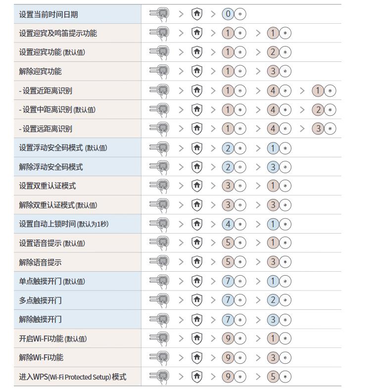 设置成功后,用户需连续成功验证密码和指纹才能开门,以此提高安全系数。 注册1个以上指纹后,才可设置(开启)双重认证模式。门锁系统初始(默认)设置 为关闭双重认证功能。
