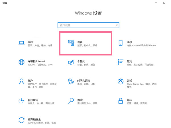 1、点击电脑右下角开始图标,进入windows设置后点击【设备】。