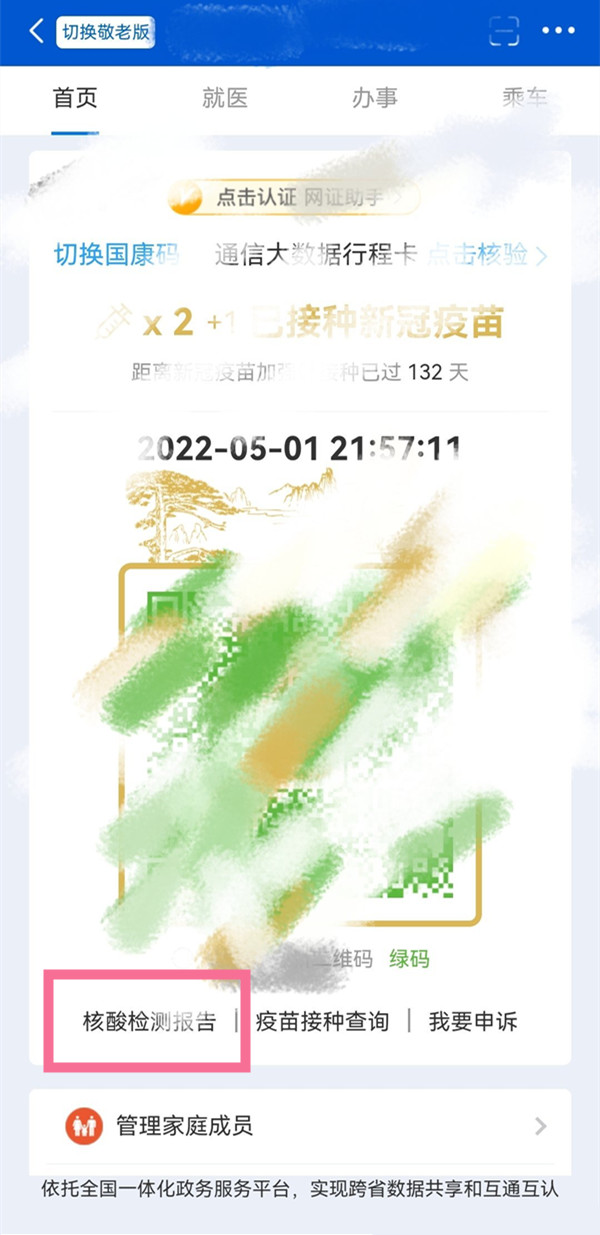 2、在健康码界面点击【核酸检测报告】即可查询历史核酸检测证明。