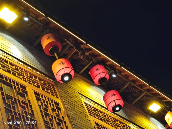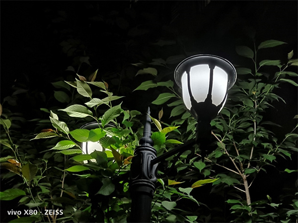 vivo X80在夜间拍摄中依然发挥了“底大一级压死人”的优势,配合蔡司T*光学的双AR镀膜/IRCF色素旋涂/ALD镀膜,强大的抗眩光能力,增强可见光透过率,还能够提高画质且准确还原物体色彩,在强光、弱光各种环境下都能Hold住。