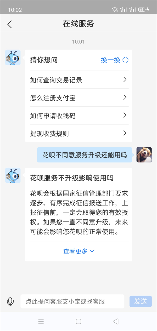 使用支付宝花呗时,总是会弹出一个升级服务的窗口,不想进行服务升级,那么花呗不同意服务升级还能用吗?