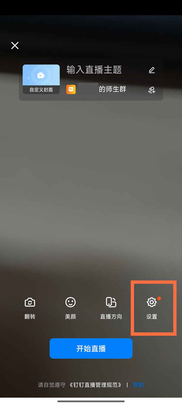 2、在发起直播前,点击【设置】。