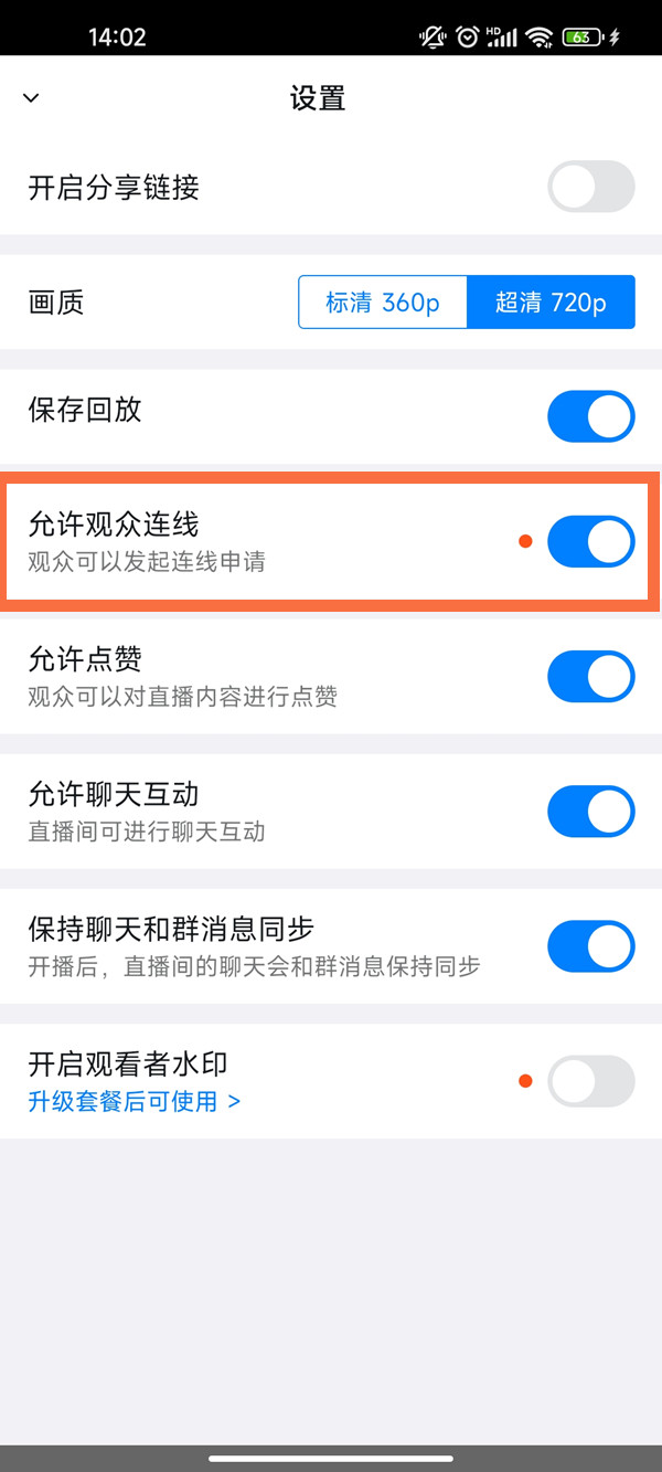 3、打开【允许观众连线】右侧的开关即可。