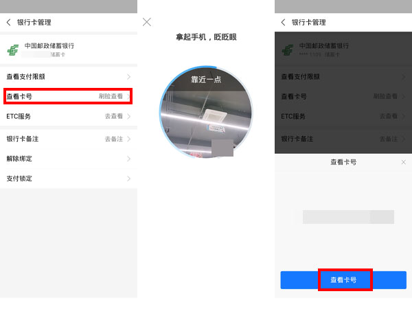 3、点击【查看卡号】,完成刷脸验证后就可以看到银行卡的卡号。