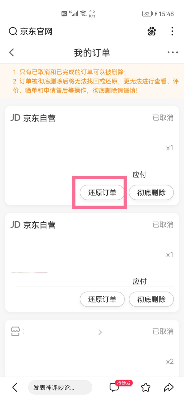 在京东上购买东西的时候,可能取消了订单,或者删除了某些完成的订单,那手机怎么恢复京东的订单记录?