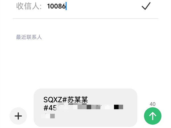 2、查询结果满足携转条件,编辑短信“SQXZ#姓名#身份证号”发送到10086获取携出授权码,收到授权码后,需在授权码有效时间内带本人身份证、申请携出的号码相对应的移动电话卡到携入方号码归属地营业厅办理。