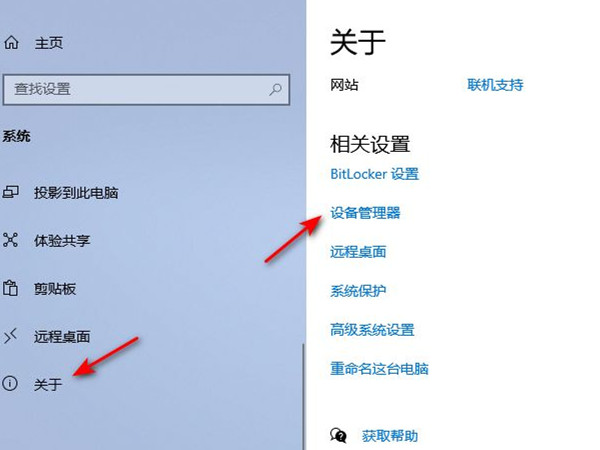 2、点击系统,点击关于,找到设备管理器进入即可。