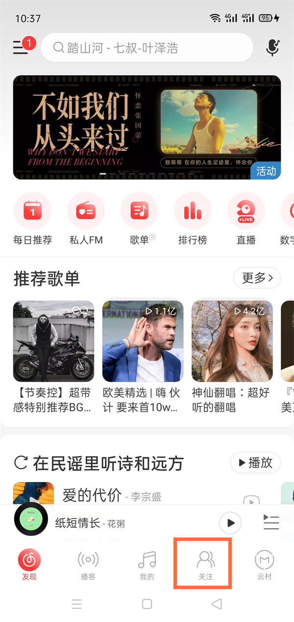 1、打开网易云音乐,点击关注。