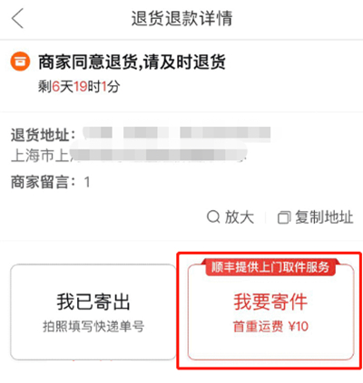 上门取件使用顺丰服务,运费是平台补贴价格;享退货包运费的商品,在首重范围(1公斤以内)内退货运费完全抵扣,买家0元退货。退货包运费是指商家在购买退货包运费服务后,对于在服务保障期间内正常销售且符合条件的订单,平台都会赠送相应的退货包运费服务。顾客在订单售后有效期结束前完成退货,经平台核实后,平台将为顾客补贴由于退货产生的单程运费。运费补贴标准按照收发两地多家快递公司的最低首重费用确定。