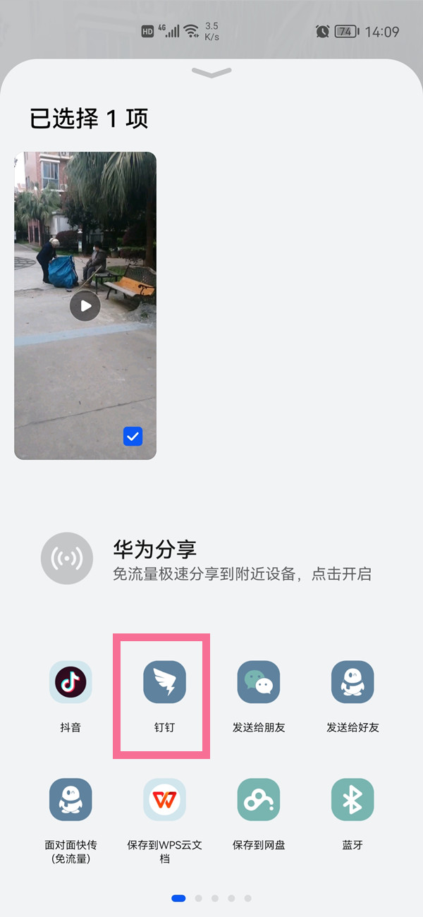 2、在相册视频中找到下载的视频,点击分享图标,选择钉钉联系人即可。