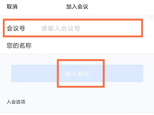 2、在加入会议页面,输入【会议号】,点击【加入会议】即可。