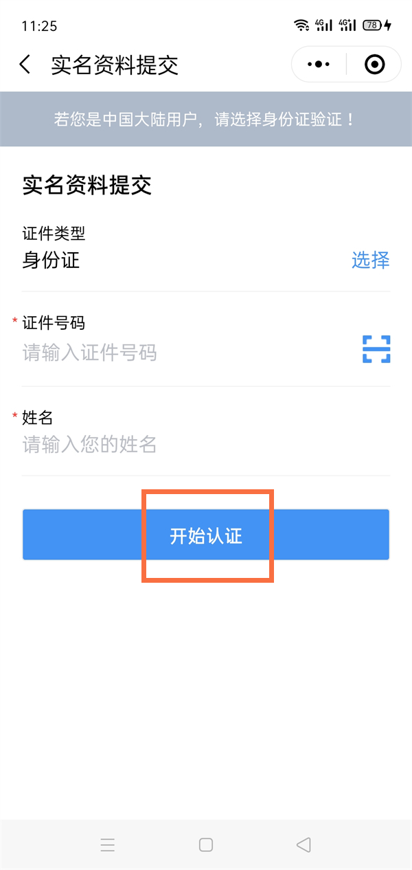3、点击重新认证后,完善资料并点击开始认证即可。
