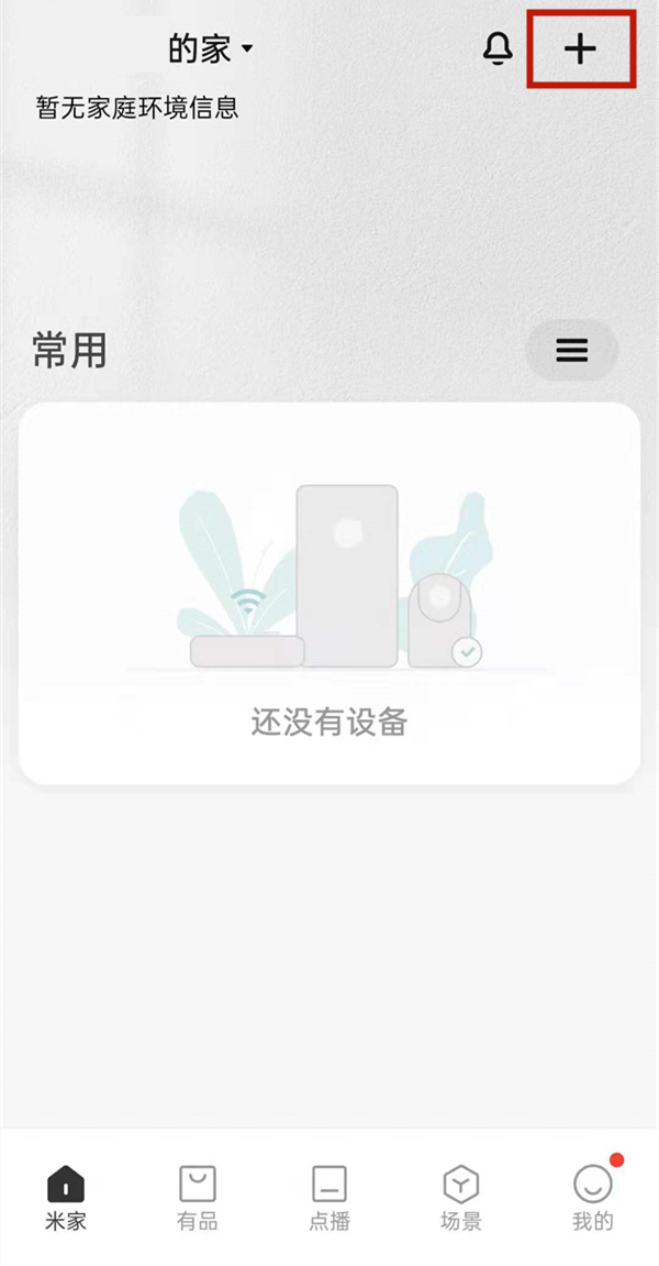 2、开启手机蓝牙和定位服务,打开米家APP,点击右上角“+”,等待扫描到设备。