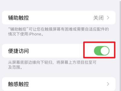 3、开启【便捷访问】后,从屏幕底部边缘向下轻扫即可下降半屏。
