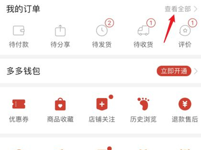 1、打开拼多多app,在个人中心界面点击全部订单。
