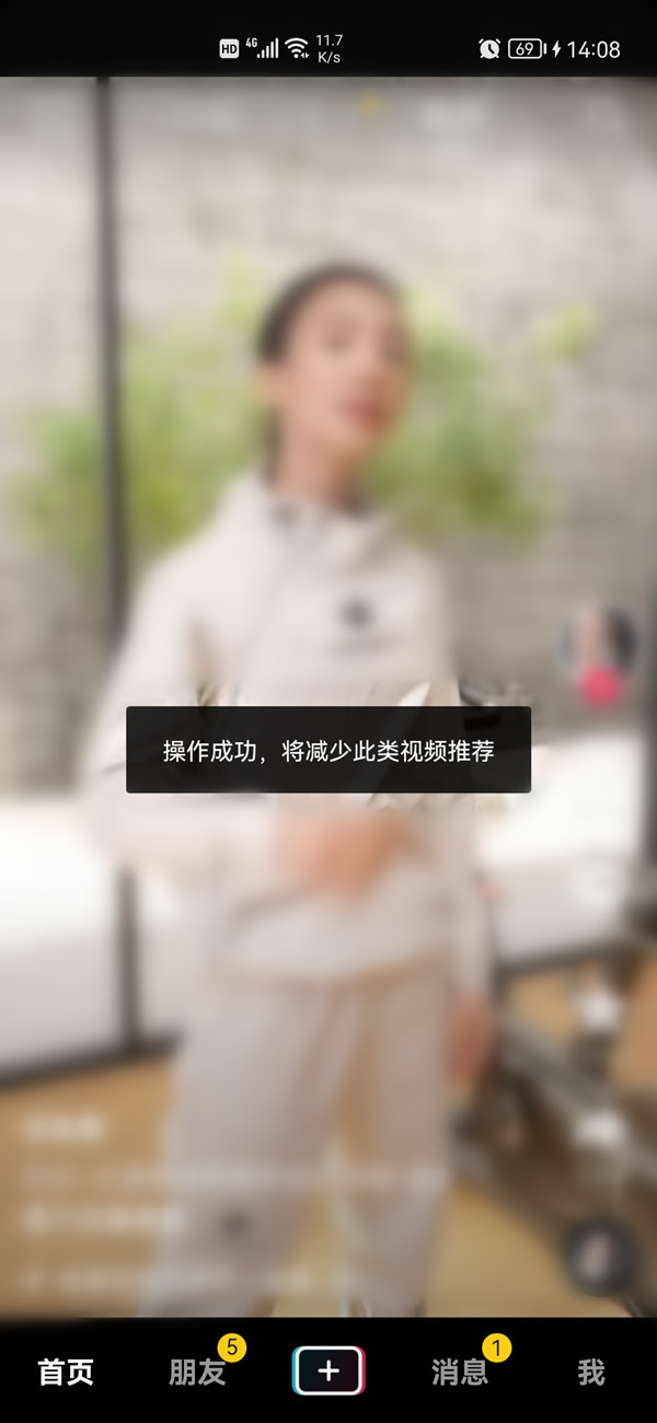 抖音不能设置屏蔽某一种类型的视频,但可以减少系统对某一类的推荐。设置方法如下: