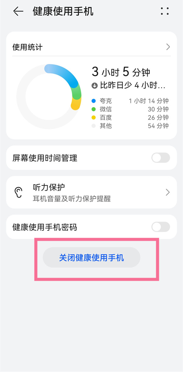 打开手机设置,点击屏幕时间管理选项,点击右上角的三点图标,选择停用屏幕时间管理。