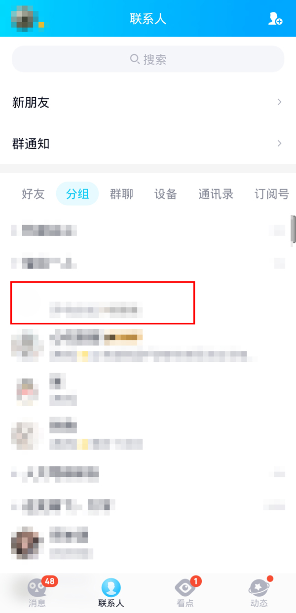 1、打开qq,在联系人界面选择一个好友,点击进入好友的主页。