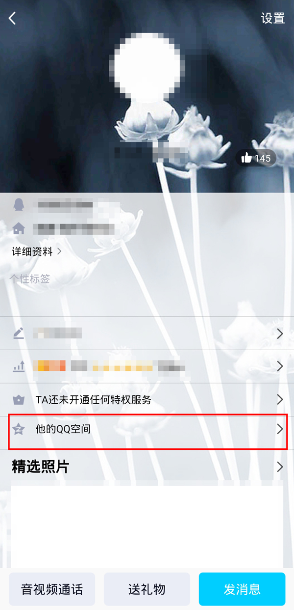 2、点击【他的qq空间】。
