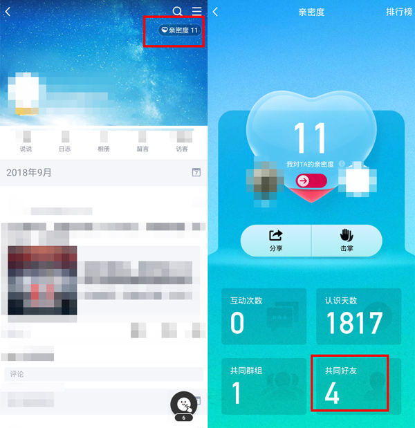 3、点击【亲密度】就能看到与对方拥有多少个共同好友。
