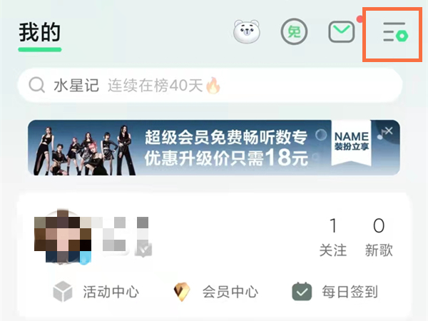 1、打开QQ音乐app,在我的界面点击右上角更多图标,再点击设置。