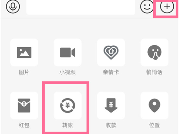 2、在聊天界面,点击加号图标,点击转账,输入转账金额即可。