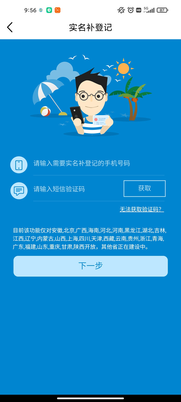 2、输入手机号和验证码后,通过服务密码或通话记录验证后完成实名认证即可。