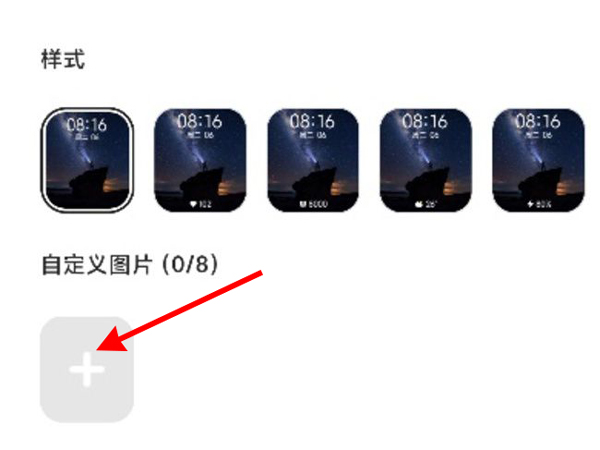 3、选择一种相册表盘的样式,点击自定义图片下的【+】。