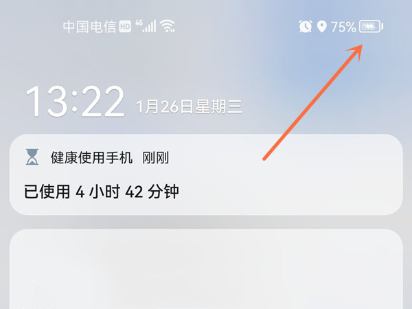 2、查看手机状态栏上的电池图标是否是快充模式。(出现双大连闪电就是超级快充,出现一大一小双闪电就是快速充电,出现单闪电就是普通充电。)