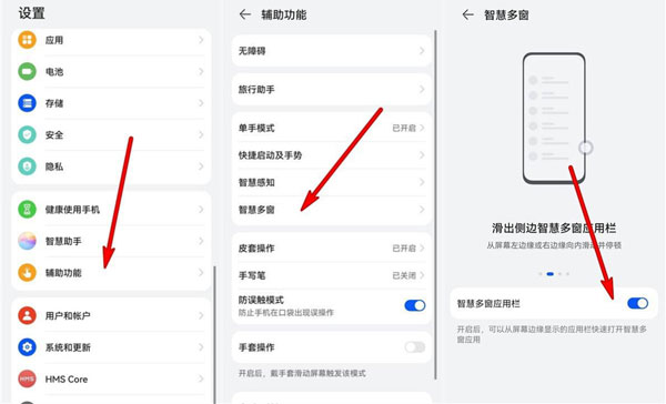 ️华为、荣耀开启智慧多窗教程如下: 打开手机设置>辅助功能>智慧多窗,打开【智慧多窗应用栏】开关即可。