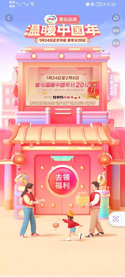 2、在温暖中国年活动页面,点击去领福利就可以参与活动。