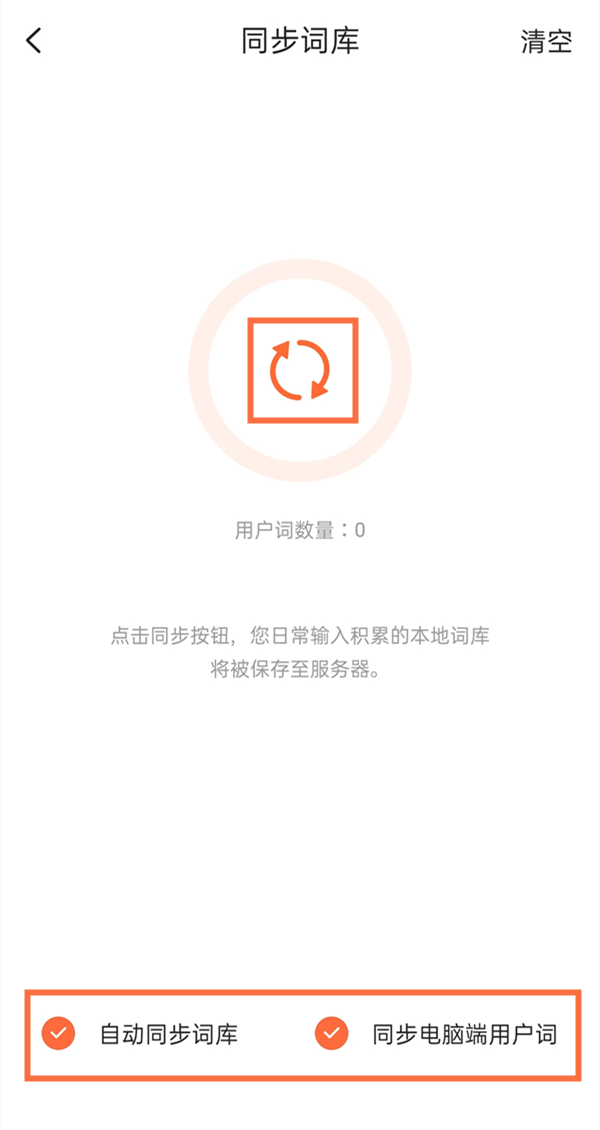 3、在词库设置页面点击同步个人词库。