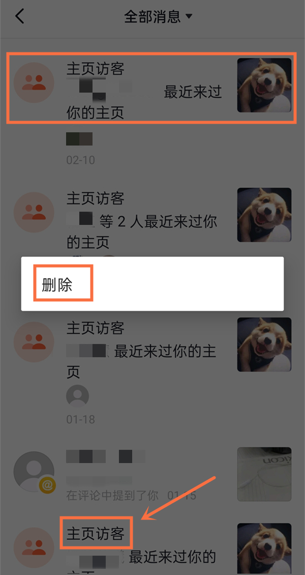 2、长按需要删除的主页访客记录后,点击删除即可。