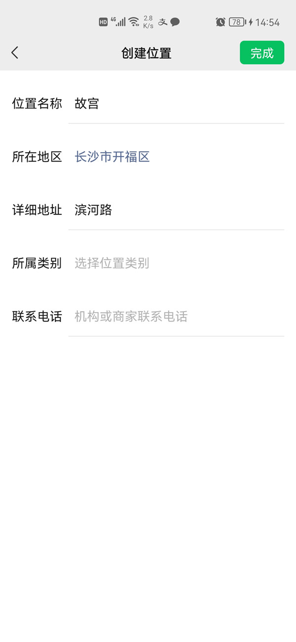 3、编写位置名称等后点击【完成】地址创建即可。