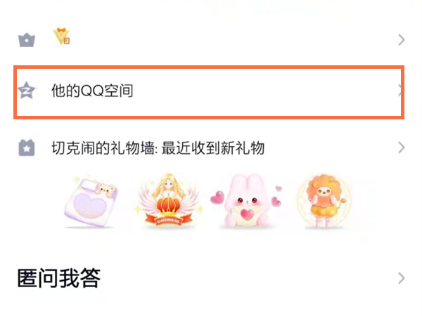 1、打开手机QQ,在好友主页点击他的QQ空间。