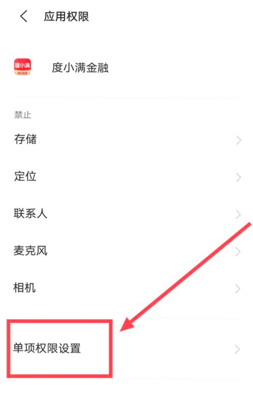 2、点击权限管理,找到度小满金融,点击单项权限设置。