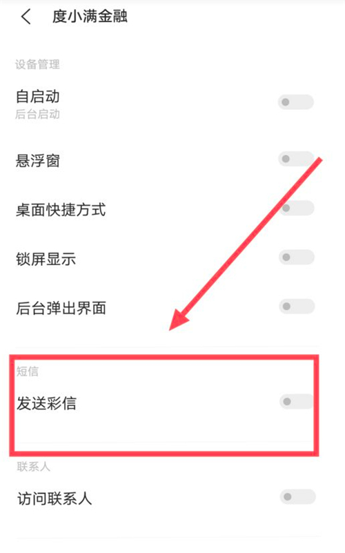 3、在单项权限中,关闭度小满的短信通知权限即可。