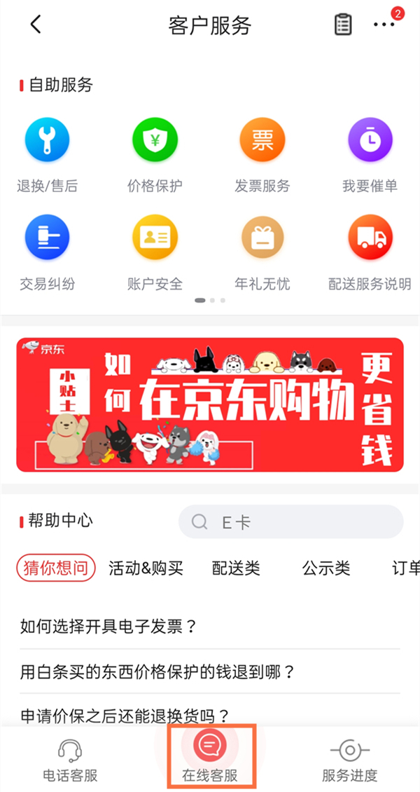 2、在客户服务页面点击在线客服。