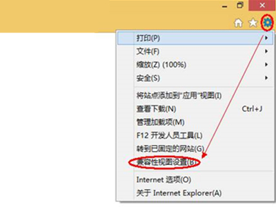 1、打开浏览器,点击设置“齿轮”,再点击兼容性视图设置。