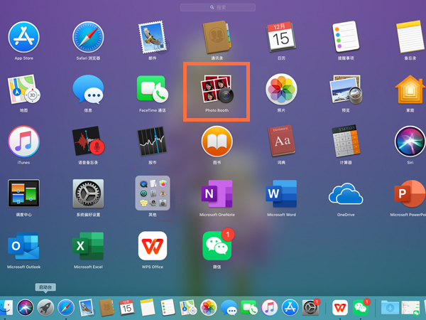 1、在Mac上找到并点击Photo Booth App进入相机界面。