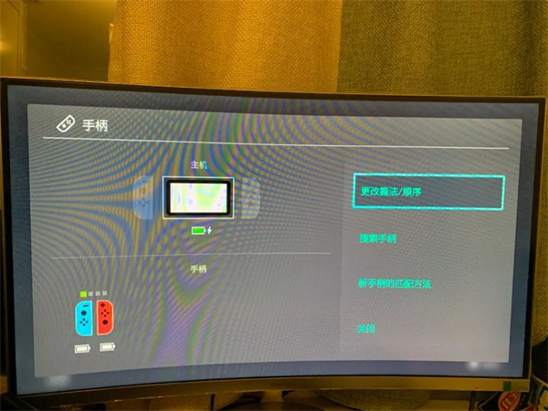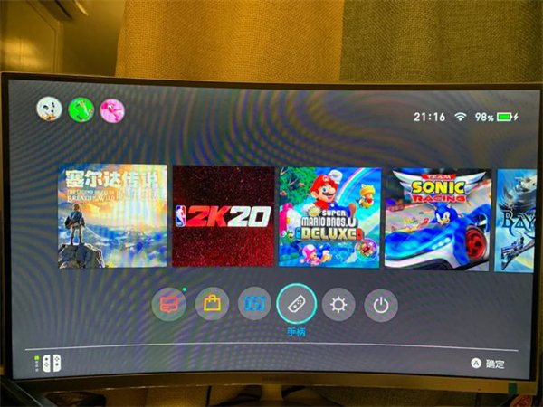 1、先将Switch手柄拆卸下来,在Switch主界面找到“手柄”选项。